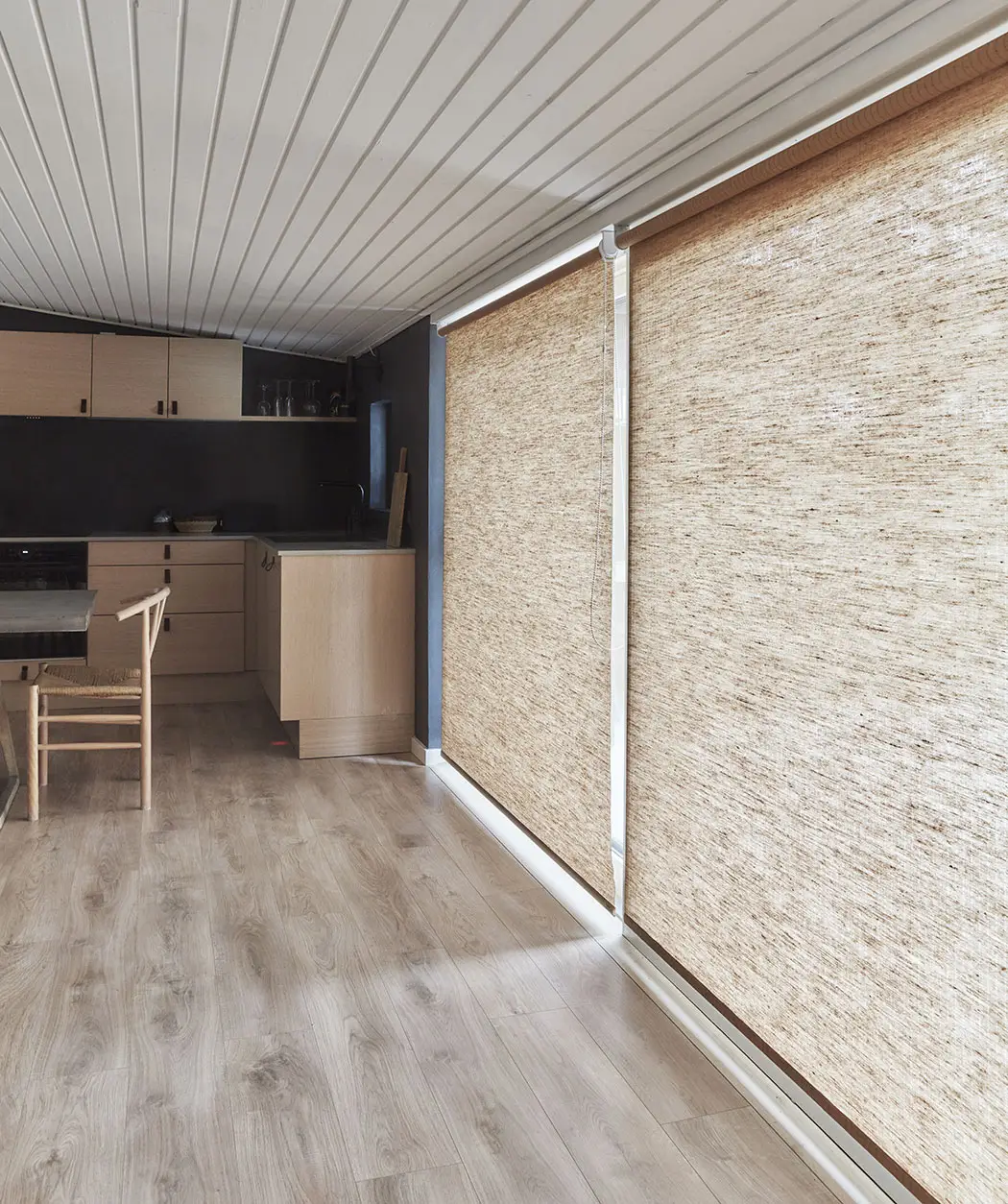 Denne brune plante rullegardin med kjedetrekk har en solavskjerming på 50%. Gardinene våre er delt inn i fem solavskjermingskategorier: 25 %, 50 %, 75 %, 90 % og 98 %.