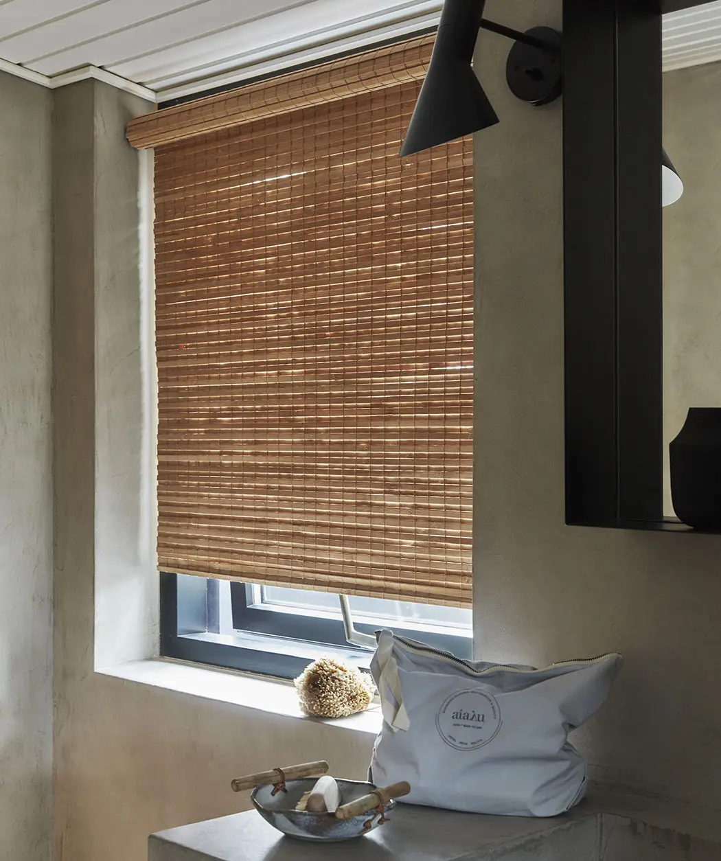 Brun heltäckande bambu rullgardin med kedjedrag. En otroligt vacker naturlig heltäckande rullgardin. Bambulamellerna är helt obehandlade, den bruna färgen erhålls genom en värmebehandlingsprocess. Dessutom är lamellerna sammanvävda i ett överlappande mönster. Således täcker gardinen för synlighet utan att stänga ljuset helt ute ur rummet. Rummet blir lite mörkare, men blir inte helt mörkt, så det är helt perfekt för t ex sovrummet, tv-rummet eller för rum där solens strålar kan vara störande. Gardinen finns även med snöredrag. Färgen passar perfekt till vår Brun fin bambu rullgardin, och dessa två gardiner kan fint matchas efter behov.